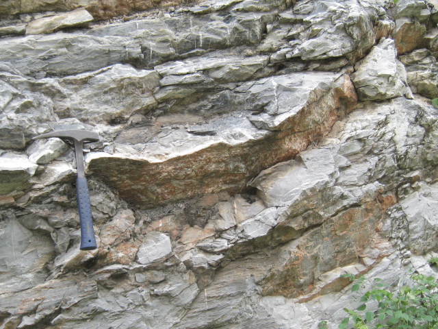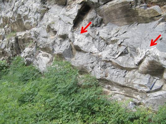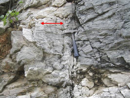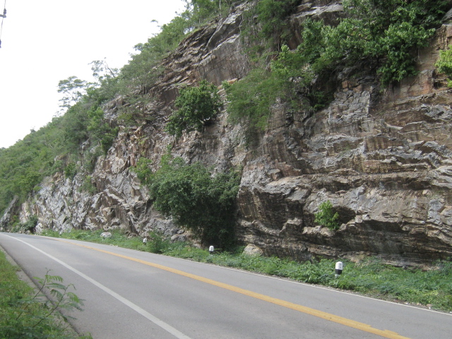 ภาพที่ 19 ผารอยเลื่อนของหินปูนยุคออโดวิเชียนริมถนนด้านตะวันออกของเขื่อนท่าทุ่งนา