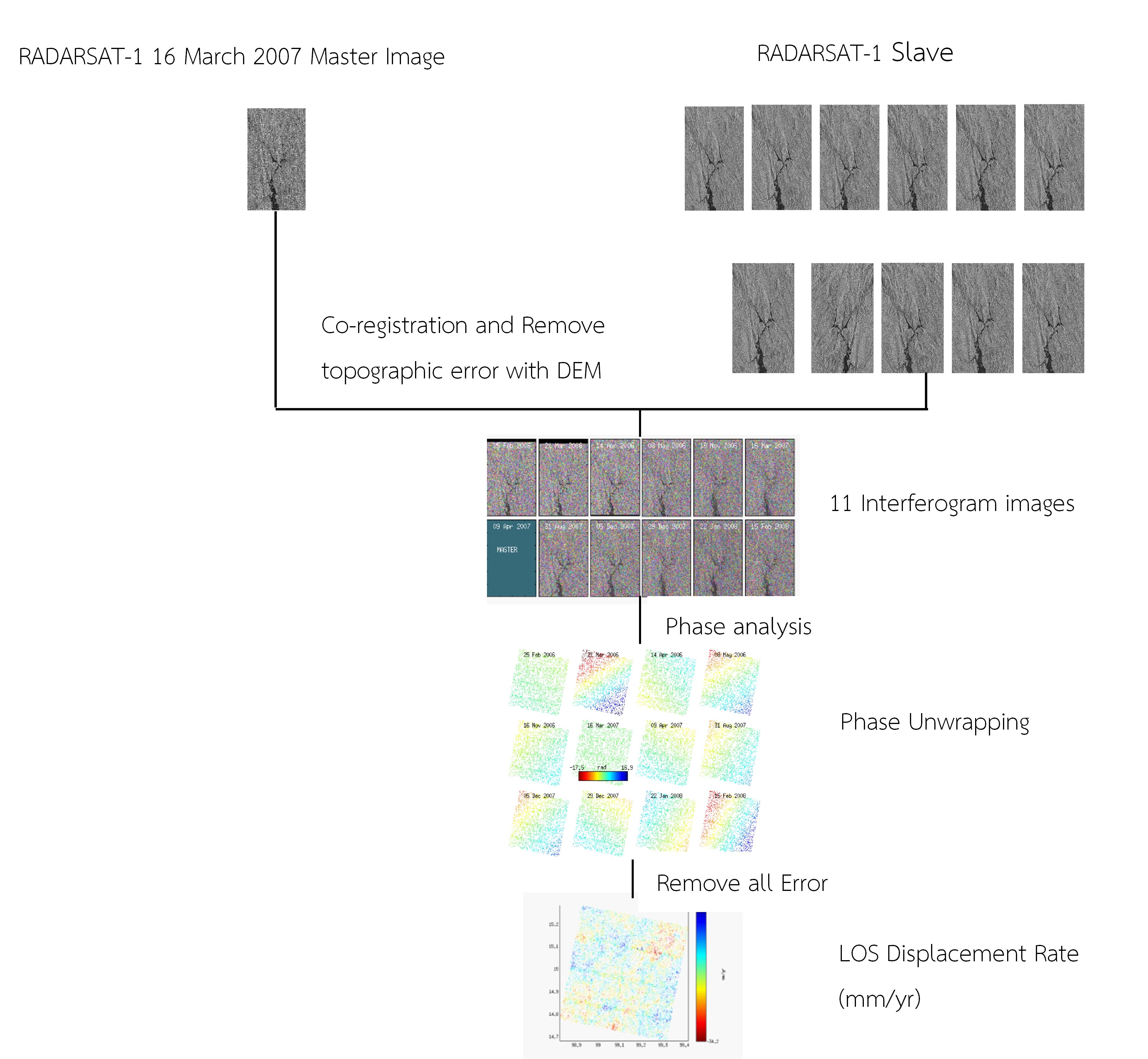 ภาพที่ 7 แสดงภาพรวมของขั้นตอนการวิเคราะห์ด้วยเทคนิค PSInSAR