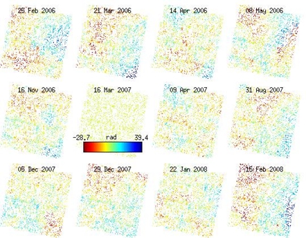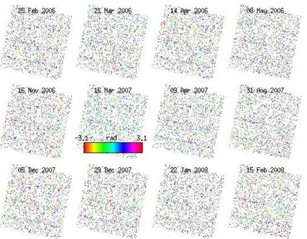 ภาพที่ 8 Interferogram 11 ภาพ ที่ได้จากการวิเคราะห์ด้วยภาพ RADARSAT-1 จำนวนทั้งสิ้น 12 ภาพ โดยจับคู่กับภาพ Master เพียงภาพเดียวคือวันที่ 16 มีนาคม 2007